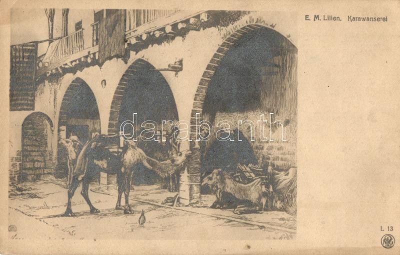 4 db RÉGI Ephraim Moses Lilien (első cionista művész) judaika művészlap / 4 pre-1945 Judaica art postcards, signed by Ephraim Moses Lilien (first Zionist artist)
