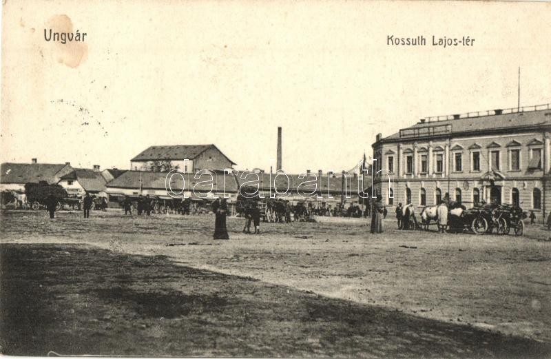 Leírás: 1914 Ungvár, Uzshorod, Uzhorod; Kossuth Lajos tér, üzletek, piaci árusok / square, shops, market vendors (EK)
