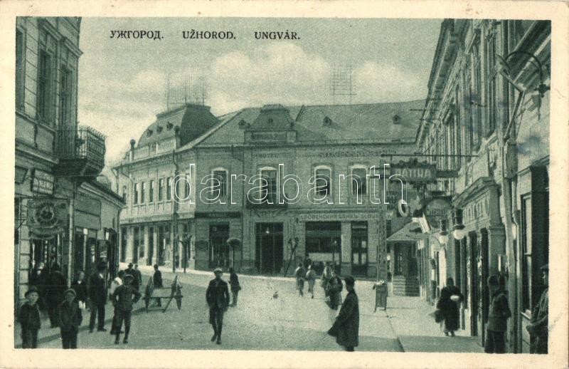 Leírás: Ungvár, Uzshorod, Uzhorod; utcakép, üzletek, patika, gyógyszertár / street view, shops, pharmacy