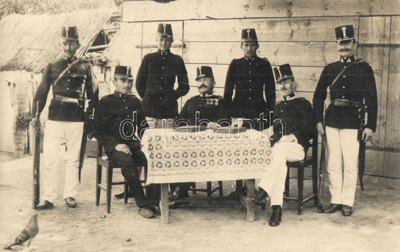 Leírás: ~1913 Osztrák-magyar katonák szolgálatra készen egy asztal körül / Austro-Hungarian K.u.K. military soldiers around the table. photo
