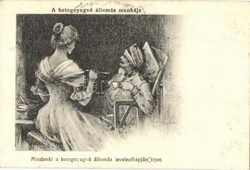 A betegnyugvó állomás munkája, Mindenki a betegnyugvó állomás levelezőlapján írjon. Vöröskereszt Egylet pecsételéssel, katonai kórház, I. világháború / WWI K.u.K. Hungarian military hospital, Red Cross nurse