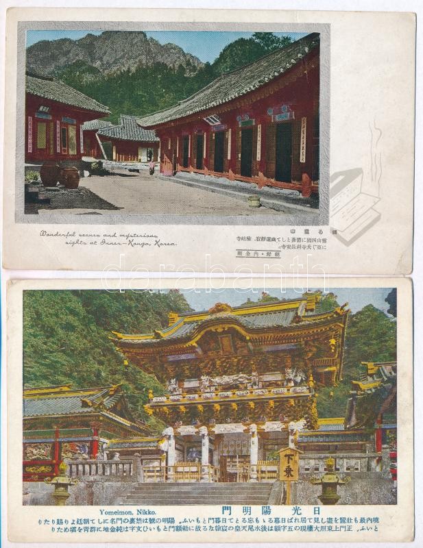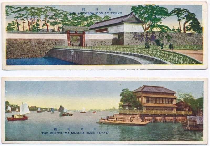 Leírás: 4 db RÉGI távol-keleti városképes lap, közte 2 minilap / 4 pre-1945 town-view postcards from the Far East, with 2 mini cards