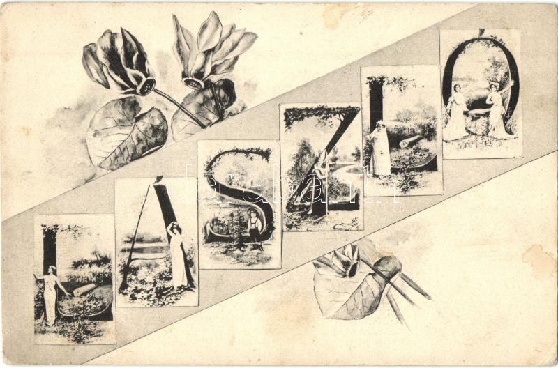 Leírás: 5 db RÉGI motívumlap / 5 pre-1945 motive postcards