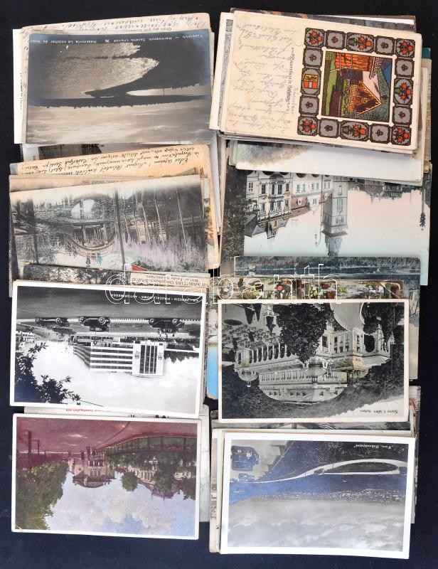 Kb. 100 db RÉGI külföldi városképes lap, jobb lapokkal, közte fotók és litho lapok / Cca. 100 pre-1945 European town-view postcards with photos and lithos