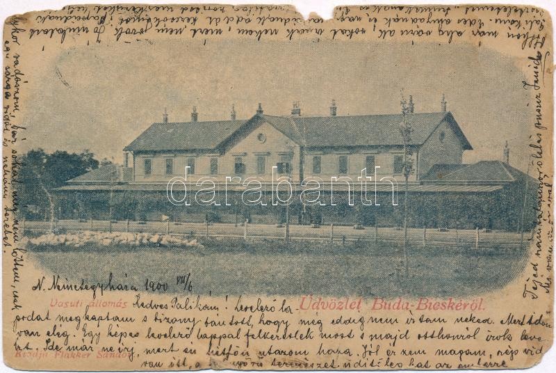 Leírás: 1900 Bicske, Buda-Bicske; Vasútállomás. Kiadja Flakker Sándor (b)