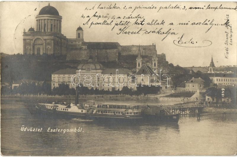 Leírás: 1904 Esztergom, Bazilika, "Budapest" oldalkerekes személyszállító gőzhajó. Kiadja Stromf Ignác
