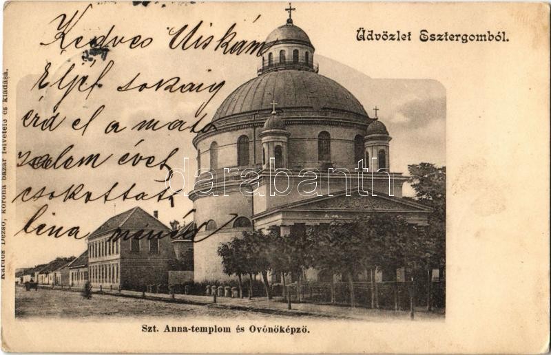 1904 Esztergom, Szent Anna templom, Óvónőképző. Kardos Dezső Korona ba... https://www.darabanth.com/hu/342-Gyorsarveres/342.0/Kepeslapok/Magyarorszag~2000004/1904-Esztergom-Szent-Anna-templom-Ovonokepzo-Kardos-Dezso-Korona-bazar-felvetele-es-kiad~II1930028
