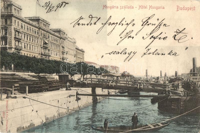 Leírás: 1905 Budapest V. Hungária szálloda, rakpart (megerősített sarok / restored corner)