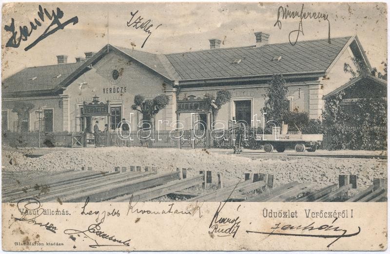 1905 Verőce, Nógrádverőce; Vasútállomás, hajtány. Kiadja Blau Márton (... https://www.darabanth.com/hu/342-Gyorsarveres/342.0/Kepeslapok/Magyarorszag~2000004/1905-Veroce-Nogradveroce-Vasutallomas-hajtany-Kiadja-Blau-Marton-azott-wet-damage~II1924463