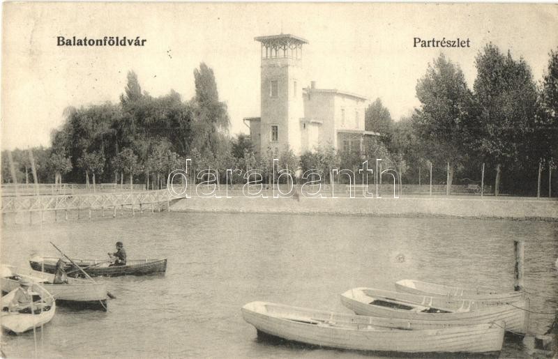 Leírás: 1906 Balatonföldvár, part, csónakázók, villa. Kiadja Gerendai Gyula (EK)