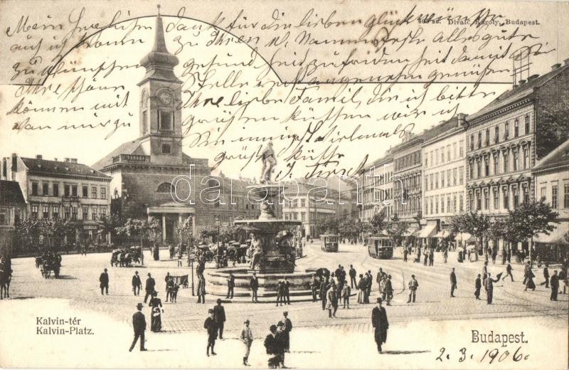 1906 Budapest VIII. Kálvin tér, szökőkút, villamos, templom, Korinek A... https://www.darabanth.com/hu/342-Gyorsarveres/342.0/Kepeslapok/Magyarorszag~2000004/1906-Budapest-VIII-Kalvin-ter-szokokut-villamos-templom-Korinek-A-H-uzlete-Divald-Kar~II1930774