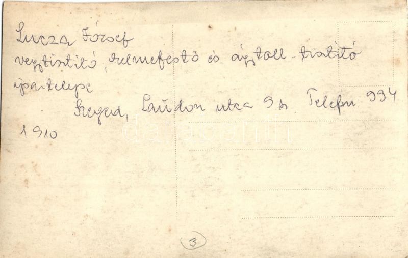Leírás: 1910 Szeged, Lucza József vegyi ruhatisztító, kelmefestő és ágytoll-tisztító ipartelepe. Laudon utca 9. photo