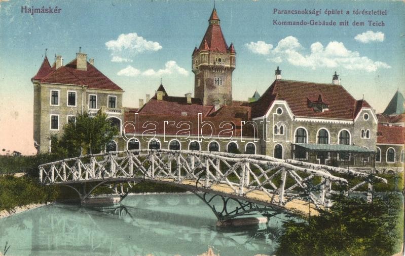 1914 Hajmáskér, Parancsnoksági épület, tó, híd (EK) https://www.darabanth.com/hu/342-Gyorsarveres/342.0/Kepeslapok/Magyarorszag~2000004/1914-Hajmasker-Parancsnoksagi-epulet-to-hid-EK~II1930733