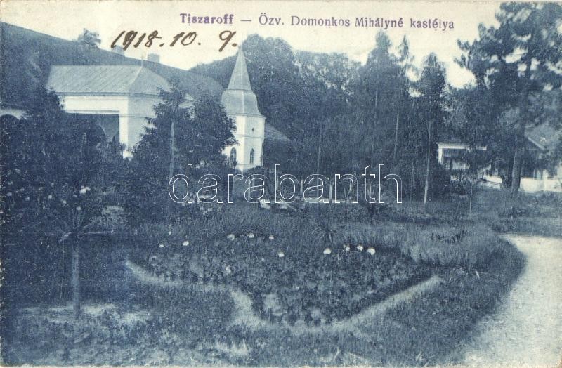 1918 Tiszaroff, Özv. Domonkos Mihályné kastélya https://www.darabanth.com/hu/342-Gyorsarveres/342.0/Kepeslapok/Magyarorszag~2000004/1918-Tiszaroff-Ozv-Domonkos-Mihalyne-kastelya~II1929234