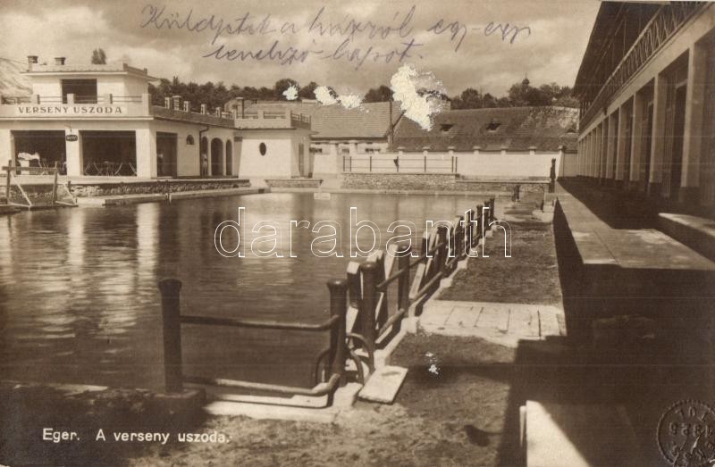 1928 Eger, Verseny uszoda (ragasztónyom / gluemark)