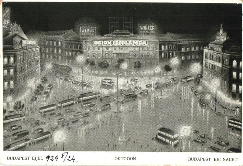 1929 Budapest VI. Oktogon éjjel, autóbusz, villamos, automobil, Albus ... https://www.darabanth.com/hu/342-Gyorsarveres/342.0/Kepeslapok/Magyarorszag~2000004/1929-Budapest-VI-Oktogon-ejjel-autobusz-villamos-automobil-Albus-szappan-Orion-izzolampa-r~II1930120