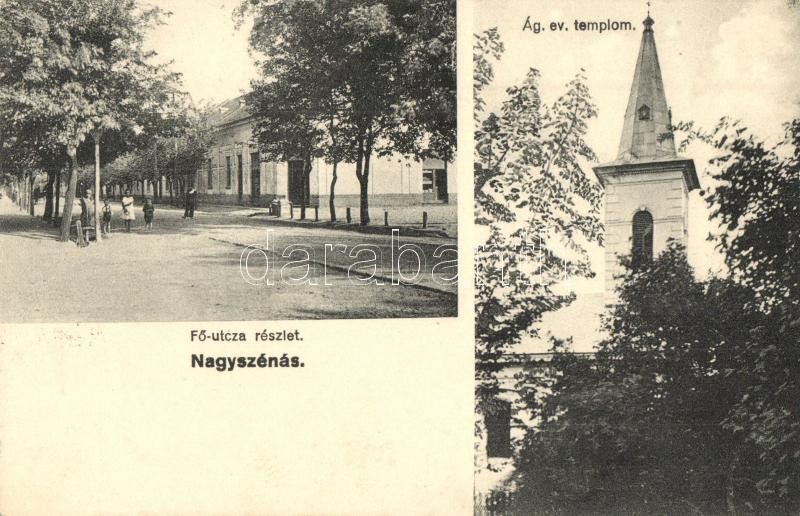 1932 Nagyszénás, Fő utca, Evangélikus templom https://www.darabanth.com/hu/342-Gyorsarveres/342.0/Kepeslapok/Magyarorszag~2000004/1932-Nagyszenas-Fo-utca-Evangelikus-templom~II1926246