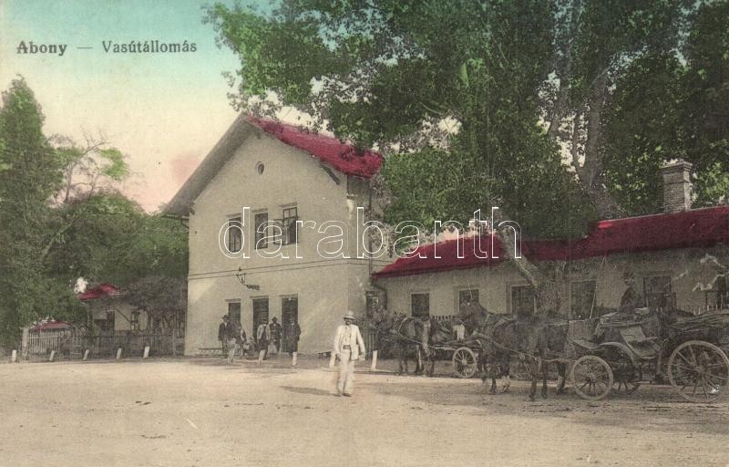 Abony, Vasútállomás, hintók, konflisok. Kássa Gyula kiadása (EK) https://www.darabanth.com/hu/342-Gyorsarveres/342.0/Kepeslapok/Magyarorszag~2000004/Abony-Vasutallomas-hintok-konflisok-Kassa-Gyula-kiadasa-EK~II1856663