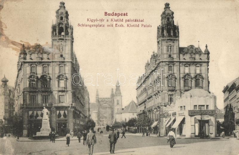 Budapest V. Kígyó tér, Klotild paloták, Schaffer, Skriván Ferenc üzlet... https://www.darabanth.com/hu/342-Gyorsarveres/342.0/Kepeslapok/Magyarorszag~2000004/Budapest-V-Kigyo-ter-Klotild-palotak-Schaffer-Skrivan-Ferenc-uzlete-feluleti-serules-~II1907058