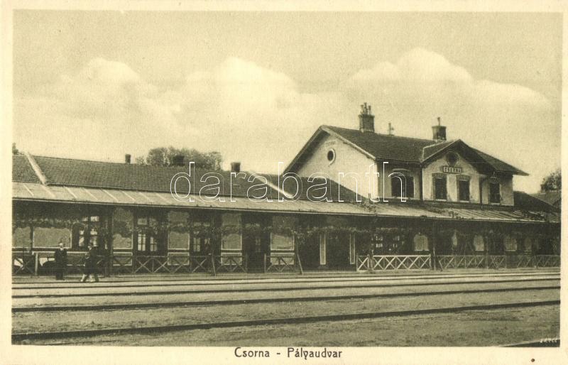 Leírás: Csorna, GySEV (Győr-Sopron-Ebenfurti) vasútállomás. Kiadja Lobenwein Harald