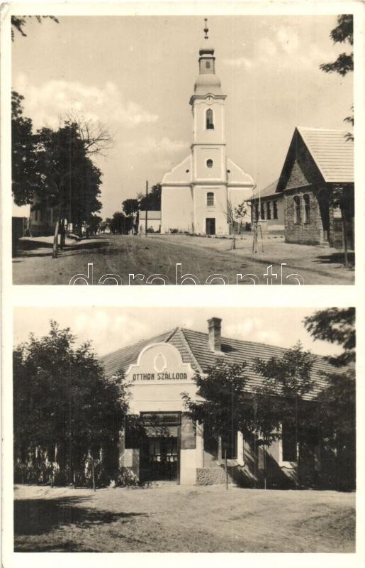 Leírás: Dunaegyháza, Evangélikus templom, Otthon (központi) szálloda. Miskovicz Gyula felvétele (EK)