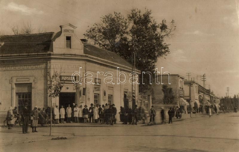 Leírás: Hajdúszoboszló, Vértanúk tere, Hangya Szövetkezet üzlete, Szűcs Bálint húsmérése, cipőbolt, kerékpár. Hangya saját kiadása (EK)