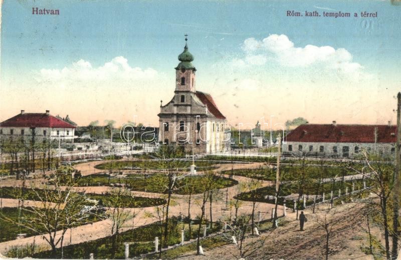 Leírás: Hatvan, Római katolikus templom a térrel (EK)