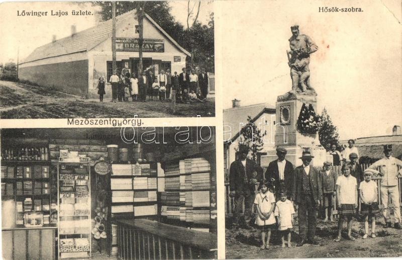 Mezőszentgyörgy, Hősök szobra, Lőwinger Lajos üzlete, külső és belső n... https://www.darabanth.com/hu/342-Gyorsarveres/342.0/Kepeslapok/Magyarorszag~2000004/Mezoszentgyorgy-Hosok-szobra-Lowinger-Lajos-uzlete-kulso-es-belso-nezet-Brazay-sosbo~II1887555