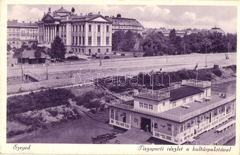 Szeged, Tiszaparti részlet a kultúrpalotával, Tisza evezősegylet csóna... https://www.darabanth.com/hu/342-Gyorsarveres/342.0/Kepeslapok/Magyarorszag~2000004/Szeged-Tiszaparti-reszlet-a-kulturpalotaval-Tisza-evezosegylet-csonakhaza-Kiadja-Grunwald-~II1896135