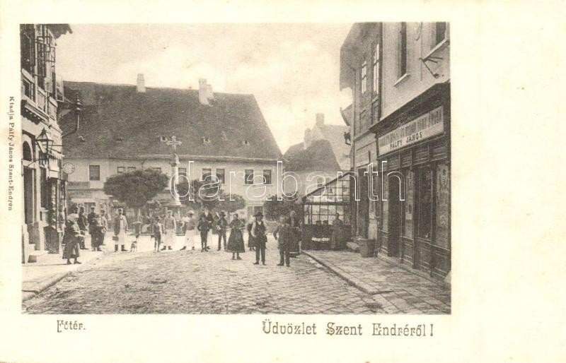 Leírás: Szentendre, Fő tér, Pálfy János üzlete és saját kiadása