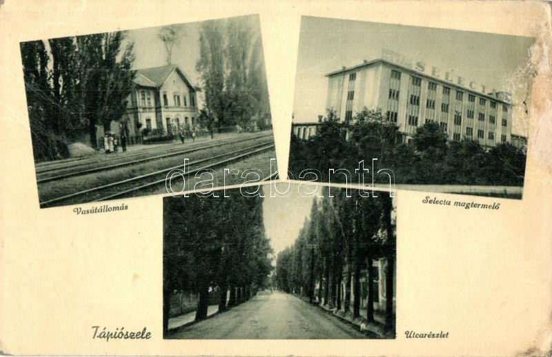 Leírás: Tápiószele, Vasútállomás, Selecta magtermelő üzem, utcakép. Kiadja Lichtig S. (felületi sérülés / surface damage)