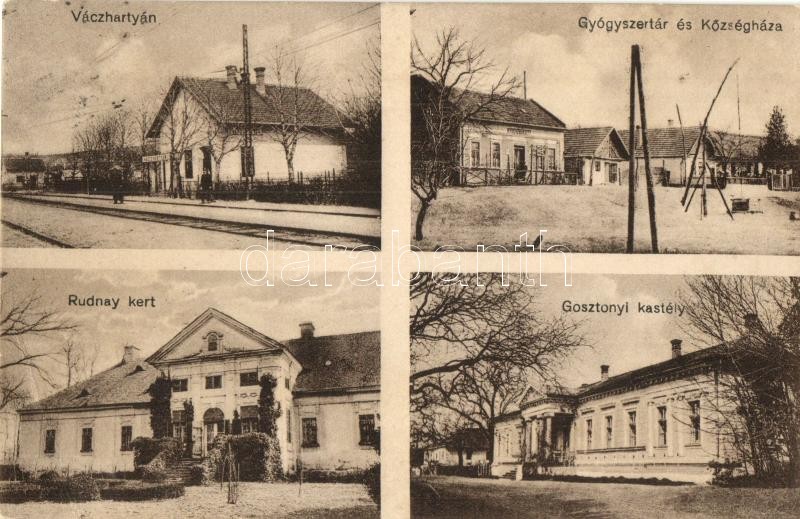 Leírás: Váchartyán, Vasútállomás, Gyógyszertár, Községháza, gémeskút, Rudnay kastély kertje, Gosztonyi kastély (EB)
