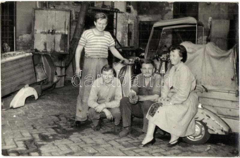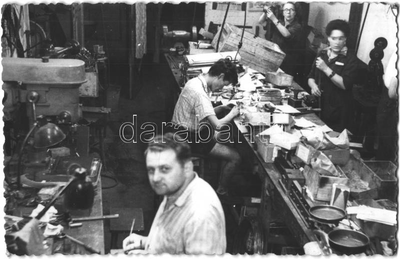 18 db modern fotó és képeslap a szocializmus idejéből; gyár belsők munkásokkal, családi fotók / 18 modern photos and postcards from the socialist era in Hungary; factory interiors with workers, family photos
