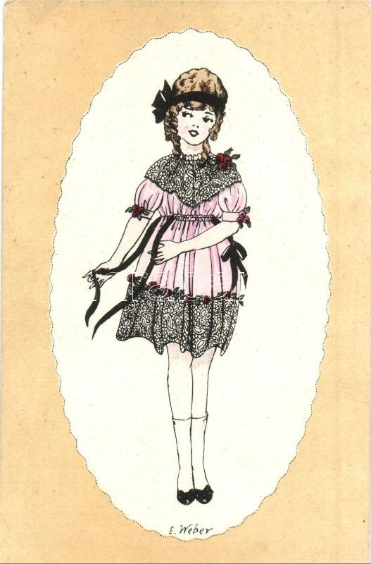 Girl in fashion dress.N.P.G. A 1005/5. s: E. Weber (EK) https://www.darabanth.com/hu/342-Gyorsarveres/342.0/Kepeslapok/Muveszlapok~2000058/Girl-in-fashion-dressNPG-A-10055-s-E-Weber-EK~II1931593