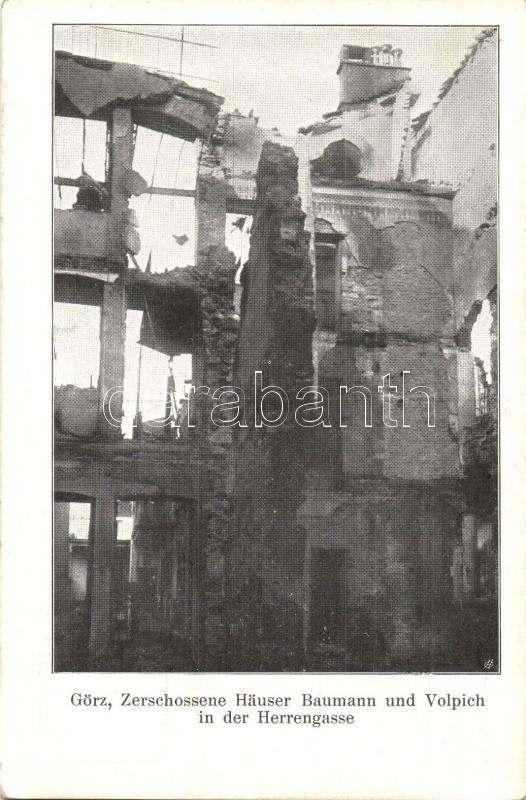 Gorizia, Görz; Zerschossene Häuser Baumann und Volpich in der Herrenga... https://www.darabanth.com/hu/342-Gyorsarveres/342.0/Kepeslapok/Olaszorszag~2000031/Gorizia-Gorz-Zerschossene-Hauser-Baumann-und-Volpich-in-der-Herrengasse-WWI-destroyed-house-ru~II1590282