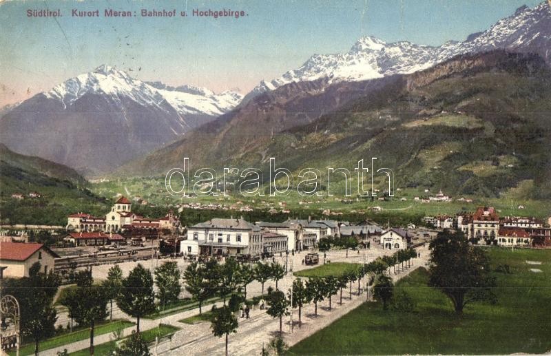 Meran Südtirol pályaudvar / Railway station https://www.darabanth.com/hu/342-Gyorsarveres/342.0/Kepeslapok/Olaszorszag~2000031/Meran-Sudtirol-palyaudvar-Railway-station~II1924603