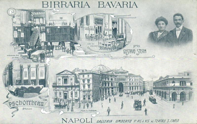 Leírás: Naples, Napoli; Gustav Stern's Bavaria brewery, interior, S. Ferdinando square, Umberto gallery, S. Carlo theater, tram, Art Nouveau (EK)