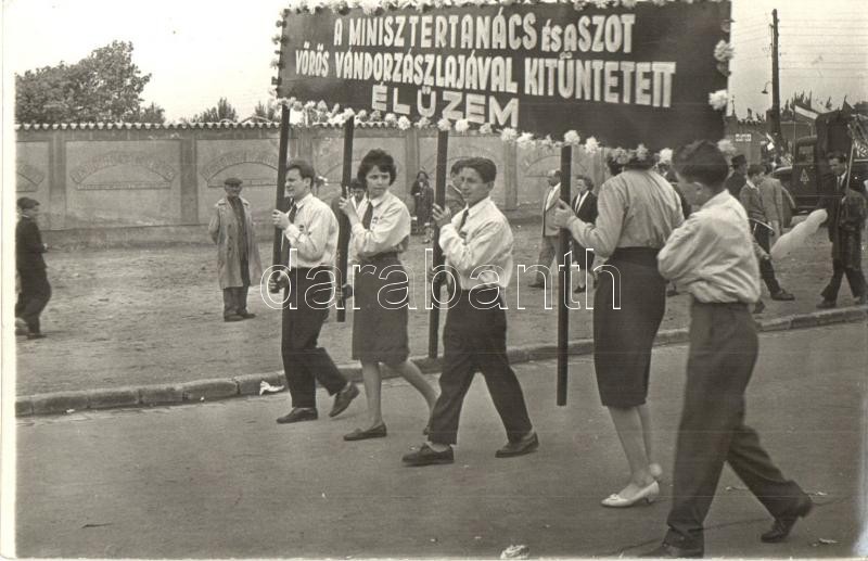 8 db MODERN magyar szocreál fotó és képeslap Május elsejei ünnepségekről / 8 modern Hungarian social realist photos and postcards from the celebrations of the International Workers' Day