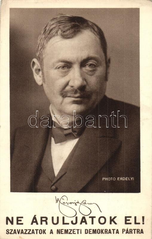 Vázsonyi Vilmos. Ne áruljatok el! Szavazzatok a Nemzeti Demokrata Párt... https://www.darabanth.com/hu/342-Gyorsarveres/342.0/Kepeslapok/Propaganda-politika~2000060/Vazsonyi-Vilmos-Ne-aruljatok-el-Szavazzatok-a-Nemzeti-Demokrata-Partra-Photo-Erdelyi-Hungar~II1929761