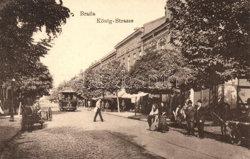 Braila, König-Strasse / street view with tram https://www.darabanth.com/hu/342-Gyorsarveres/342.0/Kepeslapok/Romania~2000033/Braila-Konig-Strasse-street-view-with-tram~II1747025