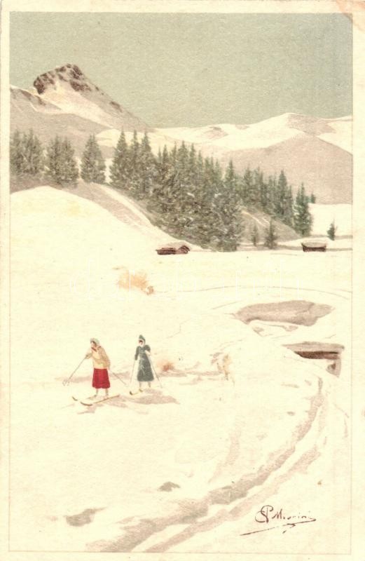 Leírás: 1916 Skiing, winter sport. Vouga & Cie. No. A. 13. litho s: Pellegrini (EK)