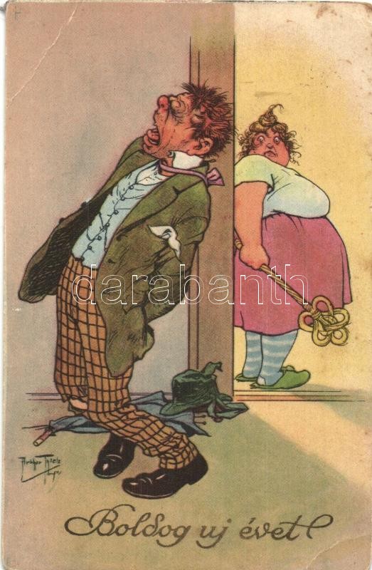 1936 Boldog új évet! / Married couple, marriage humour. L&P 2020. ... https://www.darabanth.com/hu/342-Gyorsarveres/342.0/Kepeslapok/Udvozlolapok-Unnepek~2000069/1936-Boldog-uj-evet-Married-couple-marriage-humour-LP-2020-s-Arthur-Thiele-EK~II1929695