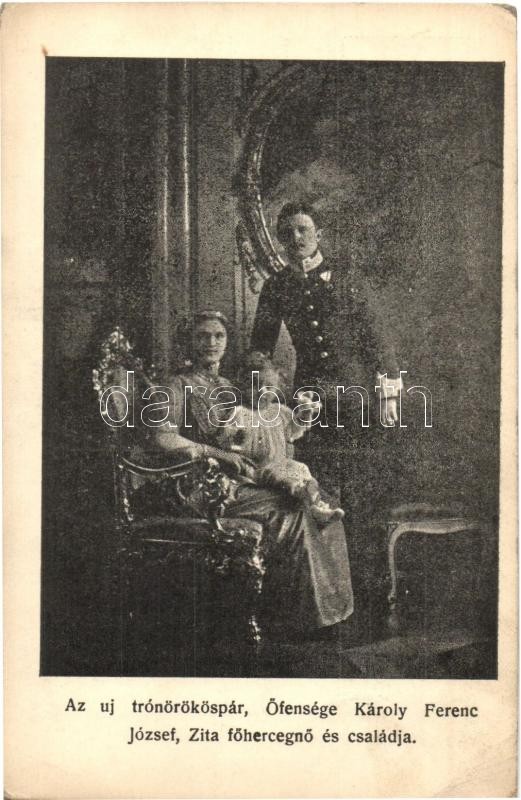 Az új trónörököspár, őfensége Károly Ferenc József, Zita főhercegnő és... https://www.darabanth.com/hu/342-Gyorsarveres/342.0/Kepeslapok/Uralkodo-Politikus~2000068/Az-uj-tronorokospar-ofensege-Karoly-Ferenc-Jozsef-Zita-fohercegno-es-csaladja-Char~II1929775
