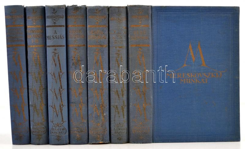 Leírás: Mereskovszkij munkái sorozat 7 kötete.(6 mű 7 kötetben.) Bp.,é.n.,Dante. Kiadói aranyozott egészvászon-kötés, kopottas borítóval.