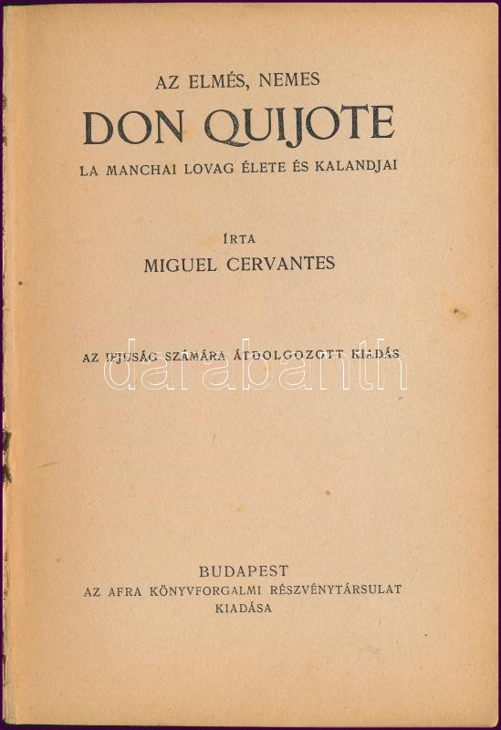 Miguel Cervantes: Az elmés, nemes Don Quijote La manchai lovag élete é... https://www.darabanth.com/hu/342-Gyorsarveres/342.0/Konyvek/Konyvek-Egyeb-ritkasagok~1000019/Miguel-Cervantes-Az-elmes-nemes-Don-Quijote-La-manchai-lovag-elete-es-kalandjai-Bp-en-Afra~II1925292