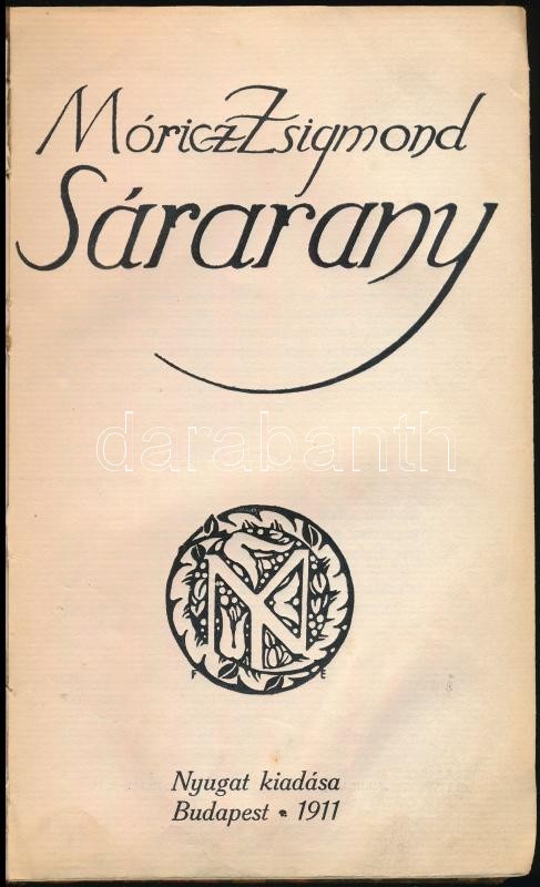 Móricz Zsigmond: Sárarany. Első kiadás. Bp., 1911, Nyugat. Korabeli át... https://www.darabanth.com/hu/342-Gyorsarveres/342.0/Konyvek/Konyvek-Egyeb-ritkasagok~1000019/Moricz-Zsigmond-Sararany-Elso-kiadas-Bp-1911-Nyugat-Korabeli-atkotott-egeszvaszon-kC3~II1930108