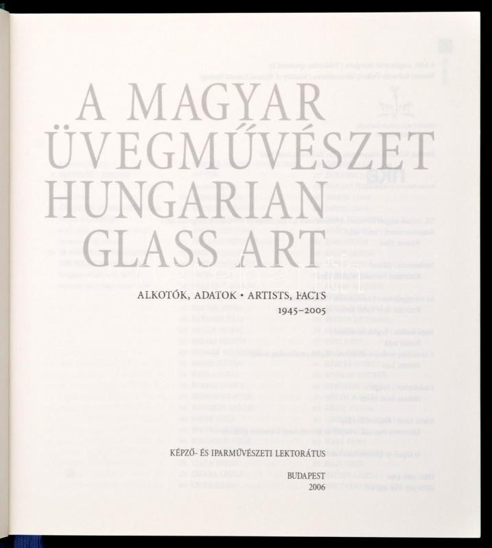 Leírás: A Magyar üvegművészet. Alkotók, adatok, 1945-2005. Hungarian Glass Art. Artists, facts. 1945-2005. Bp.,2006, Képző és Iparművészeti Lektorátus. Kiadói kartonált papírkötés.
