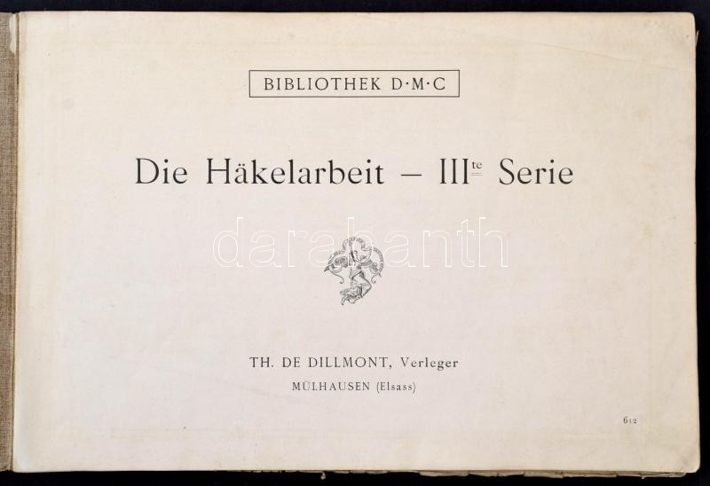 Bibliothek DMC. Die Häkelarbeit IIIte Serie. Mülhausen,é.n., Thérese de Dillmont. Német nyelven. Kiadói haránt-alakú félvászon-kötésben, egy lap részben kijár, kissé hiányos címlappal.