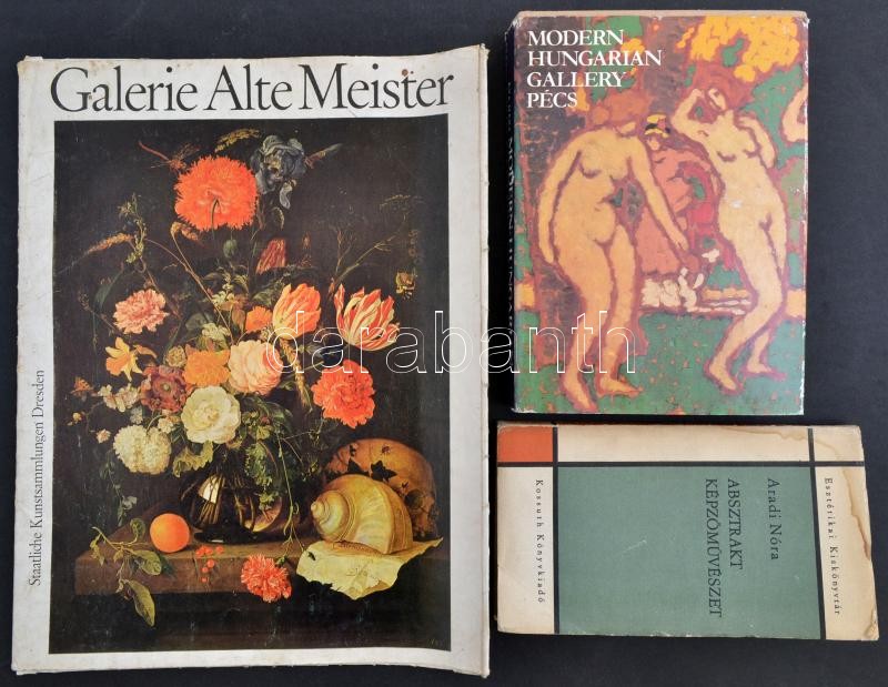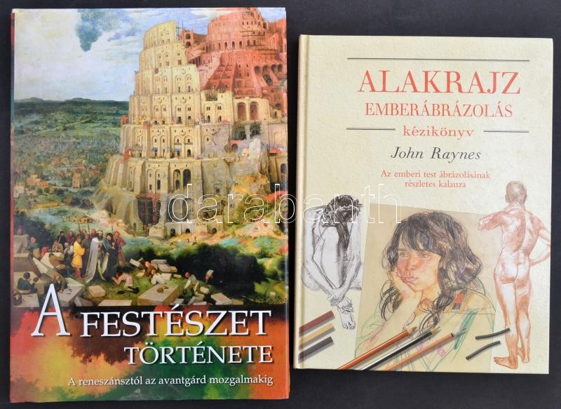 Vegyes művészeti könyvtétel, 6 db: John Raynes: Alakrajz. Emberábrázolás kézikönyve. Fordította: Szalkai Szőke Annamária. Bp.,2007, Replica. Kiadói kartonált papírkötés. + Kovács Bernadett: A festészet története - A reneszánsztól az avantgárd mozgalmakig. Kisújszállás,2010, Pannon-Literatúra Kft. Kiadói kartonált papírkötés. + Hárs Éva-Romváry Ferenc: Modern Hungarian Gallery. Pécs. Bp.,1981, Corvina. Angol nyelven. Kiadói egészvászon-kötés, kiadói papír védőborítóban. + Aradi Nóra: Absztrakt képzőművészet. Esztétikai Kiskönyvtár. Bp.,1964,Kossuth. Kiadói papírkötés, foltos. + Galerie Alte Meister. Staatliche Kunstsammlungen Dresden. Dresden, é.n., Verlag des Kunst. Német nyelven. Kiadói kissé szakadt, kissé foltos papírmappában.