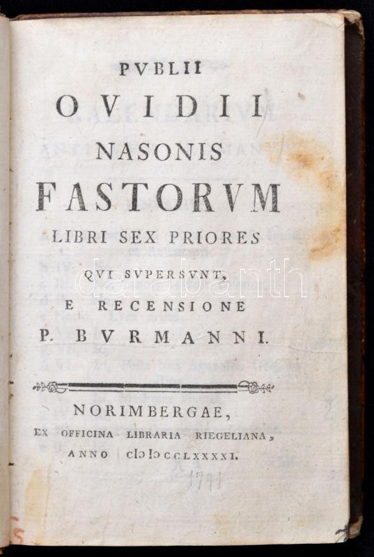 Ovidius: Publii Ovidii Nasonis Fastorum libri sex priores... Norimberg... https://www.darabanth.com/hu/342-Gyorsarveres/342.0/Konyvek/Konyvek-Idegen-nyelvu-konyvek~1000015/Ovidius-Publii-Ovidii-Nasonis-Fastorum-libri-sex-priores-Norimbergae-1791-Ex-officina-Libraria~II1930289